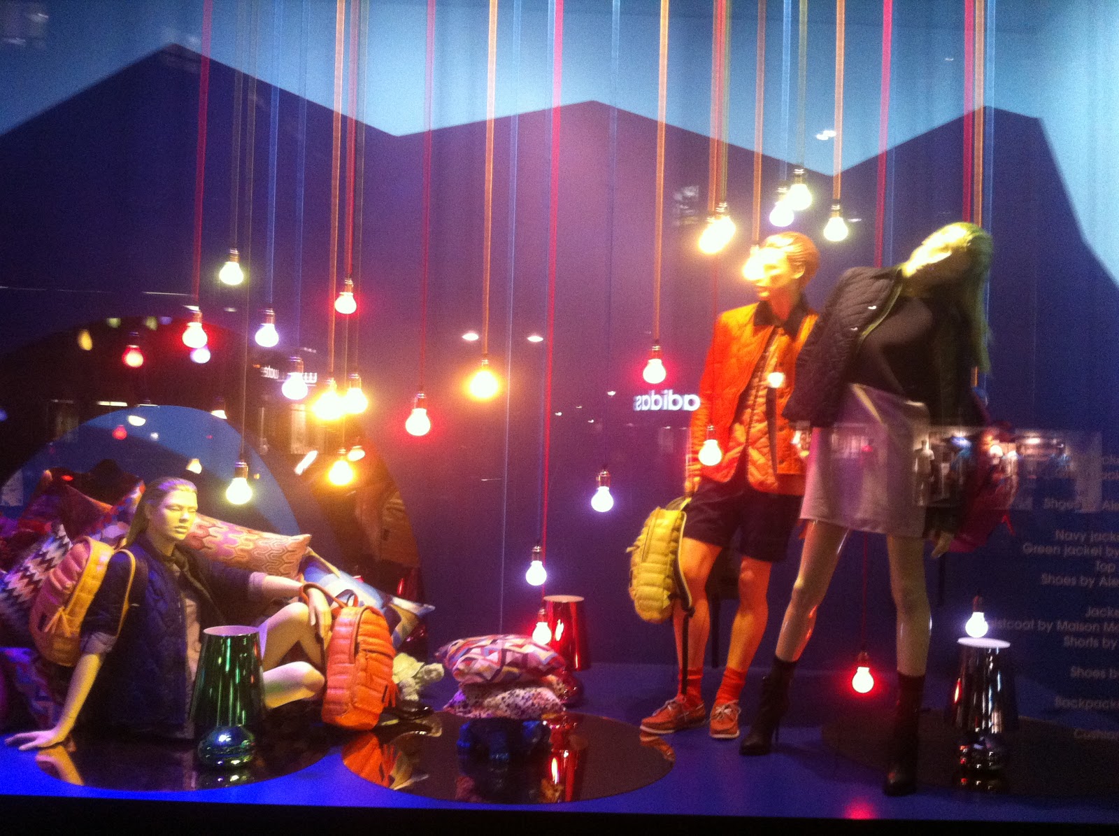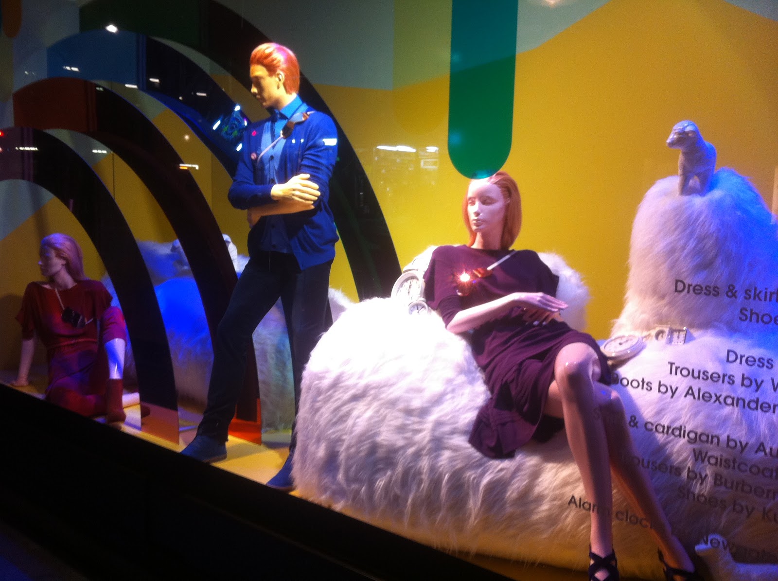 Nessa minha última viagem tentei fotografar algumas vitrines legais para vocês verem o que ta em alta lá fora, mas, infelizmente, pela falta de tempo não fui muito bem sucedida nesse meu plano, não deu pra fotografar tantas quanto eu queria. Tudo bem, porque mesmo assim ainda tem coisa legal para mostrar,  como essa divertida vitrine da Selfridges em Londres, uma mega magazine localizada na Oxford Street. Como vocês podem perceber, o color block ainda está com tudo por lá, mesmo sendo inverno. A diferença é que algumas marcas trocaram os tons mais fortes e vibrantes por tons mais sóbrios, exemplo: azul royal por azul petróleo, laranja por mostarda, vermelho por vinho e por aí vai.