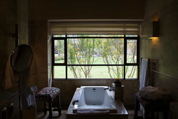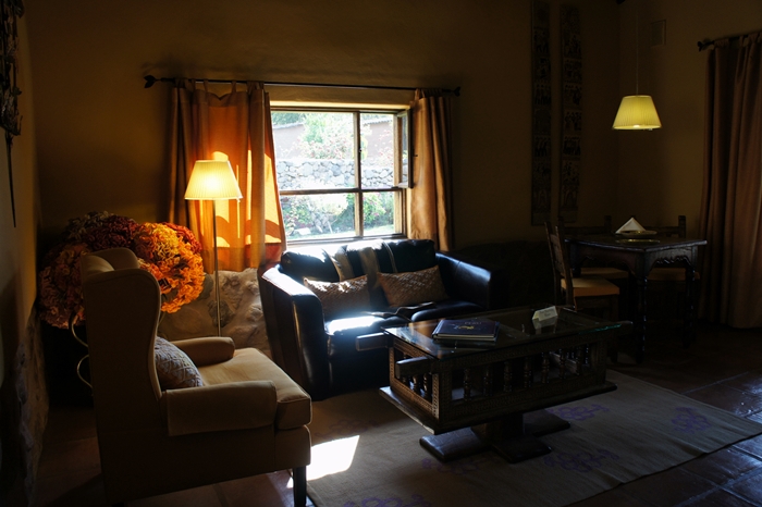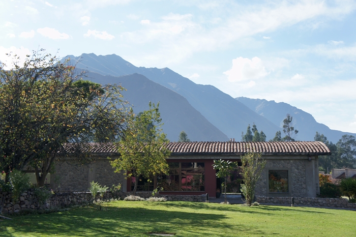 Meu encanto começou com a localização, o hotel fica exatamente no meio do Vale Sagrado, cercado por enormes montanhas, próximo ao rio Urubamba. De um lado vemos as montanhas desérticas onde ficam as Salinas de Maras, bem marrons e do outro vemos montanhas bem verdinhas, a diferença é impressionante e deixa a paisagem incrível.