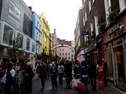 Localizada no Soho, pertinho da Oxford Street, essa rua de pedestres e os seus arredores abrigam lojas de estilistas independentes, brechós e marcas moderninhas de streetwear como Fred Perry, Vans, WeSC, Diesel e New Era. Lá você também encontra vários restaurantes legais, a loja da Lomo com vários artigos de fotografia e a famosa Liberty, loja que ficou famosa pelos seus tecidos de estampa floral, mas que hoje vende de tudo.