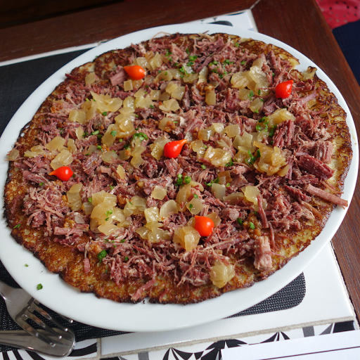 E a Franse (França) deve agradar em cheio quem gosta da mistura de doce e salgado, leva queijo brie, bacon, maçã e mel.