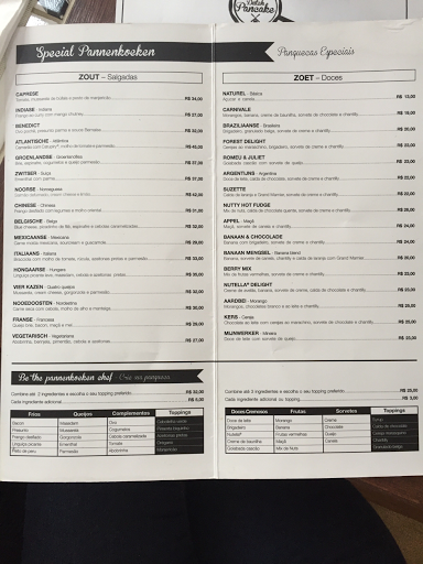 O cardápio conta com inúmeras opções de sabores de panquecas, alguns mais típicos e outros adaptados para o paladar brasileiro como a Nooedosteen (Nordestina), com carne seca e manteiga de garrafa.